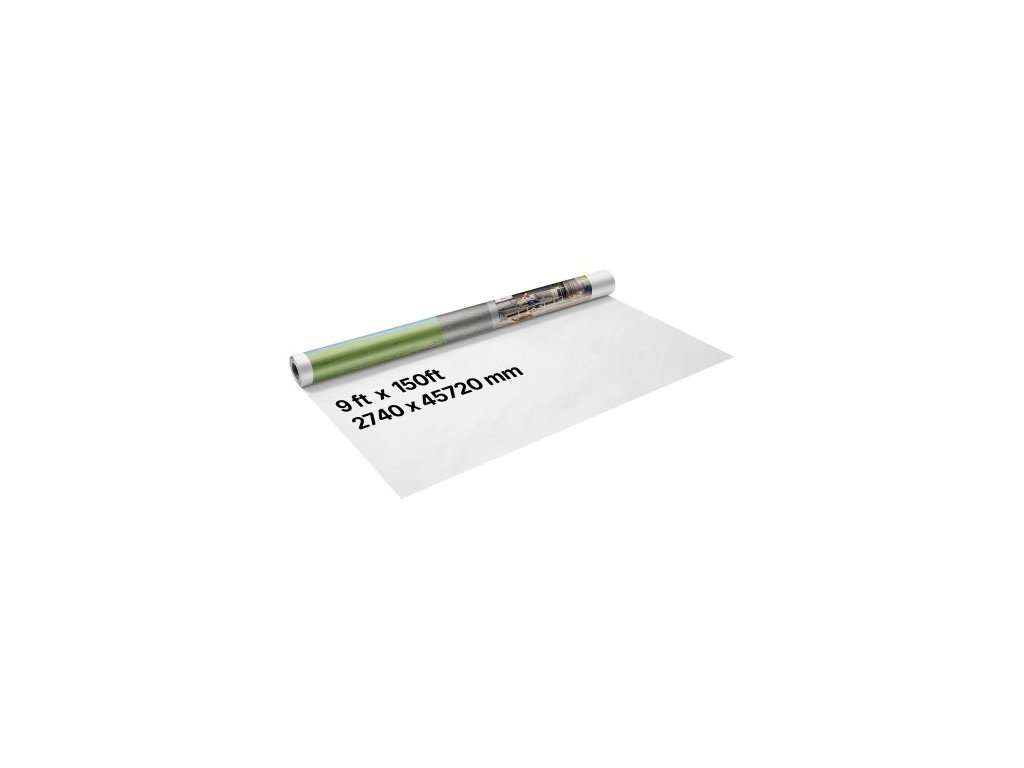 Gramáž na metr čtvereční: 100 g/m², Barva: Bílá, Čistá hmotnost produktu: 13,4 kg, Pokrytá plocha: 1350 čtverečních stop / 125,42 m², Rozměry: 9 x 150 stop / 2740 x 45720 mm,Číslo modelu položky: PW02, Tloušťka: 0,13 mm, Materiál: PE a PE tkaná látka