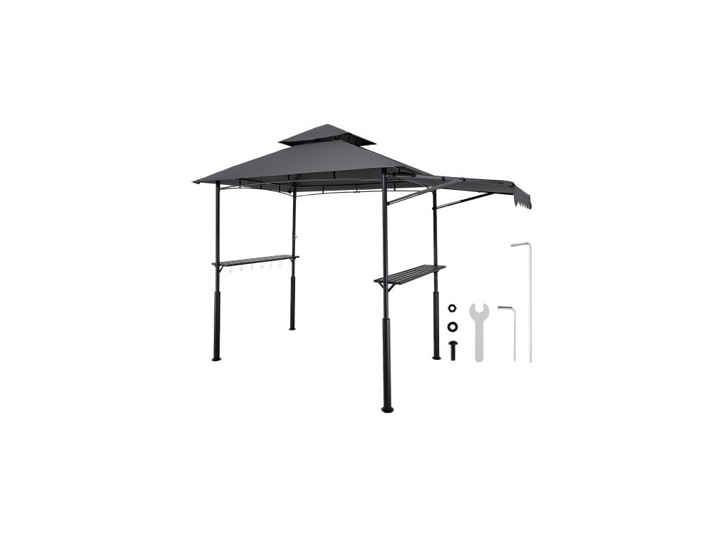 Grilovací altán VEVOR, 2,43 x 1,5 m, dvoupatrový, BBQ altán s přídavnou markýzou, práškově lakovaný ocelový přístřešek na terasu s 2 bočními policemi, otvírák na lahve a háčky, venkovní grilovací stříška do zahradyKovový altán s grilem