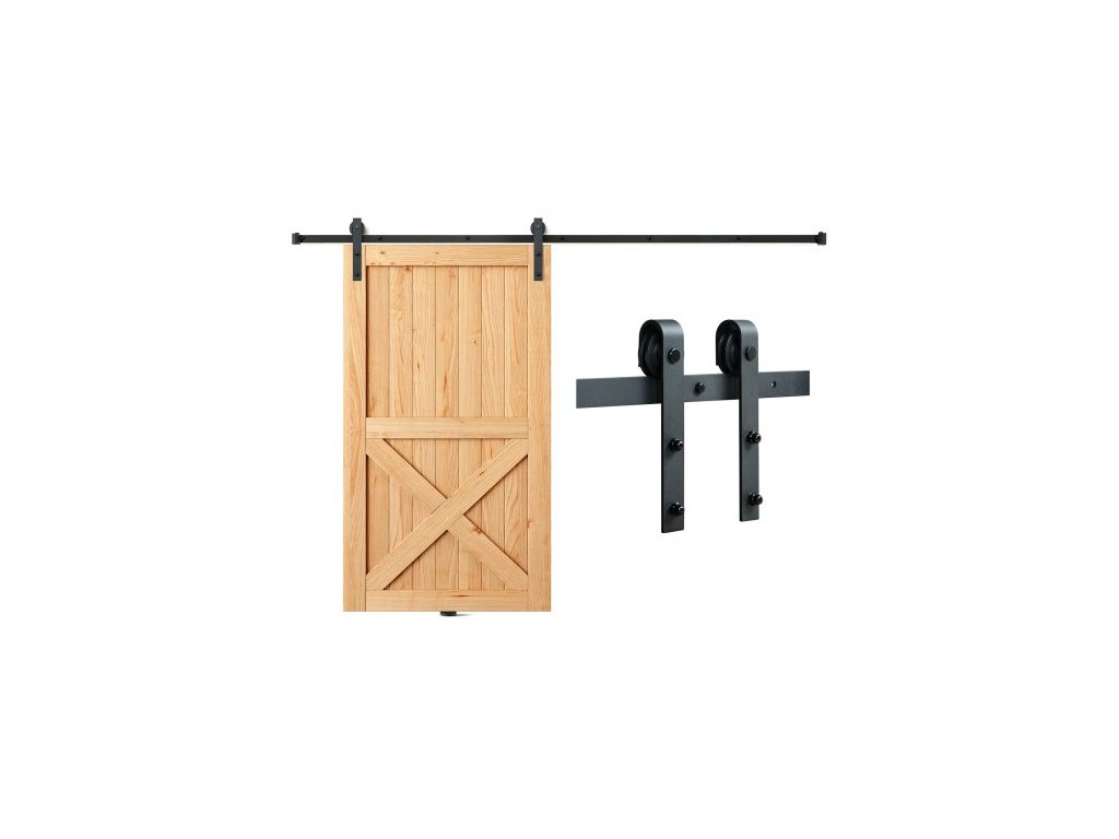 Hardwarová sada posuvných dvířek VEVOR 8FT, 330 LBS Sada kolejnicových vrat pro těžké zatížení pro jedno dveře, vhodná pro 3,7-4,3 ft široký a 1,3"-1,8" tlustý dveřní panel, s hladkou a tichou kladkou (tvar J)