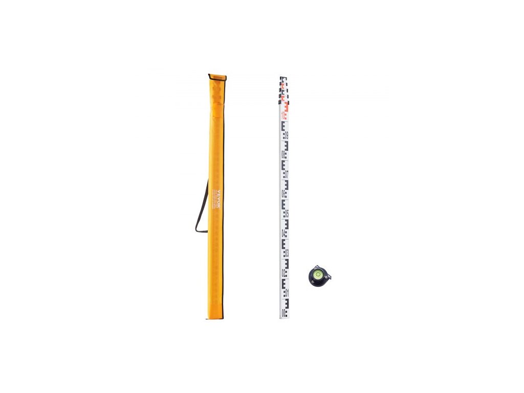Hliníková lať VEVOR, 5M metrická teleskopická měřicí lať, oboustranná stupnice v CM/MM nivelační lať, hliníková slitina, geodetická lať s vodováhou a přepravní taškou pro měření domů, stěn a podlah