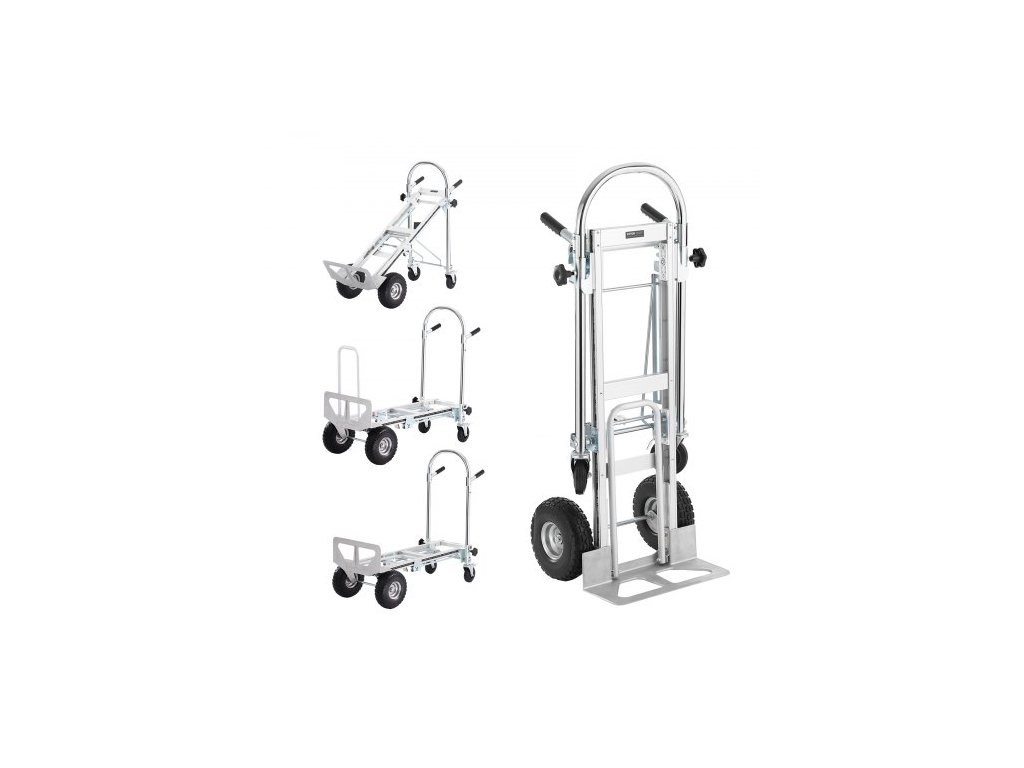 Hliníkový ruční vozík VEVOR, 4 v 1, nosnost 1 000 lb, těžký průmyslový konvertibilní skládací ruční vozík a vozík, užitkový vozík se přemění z ručního vozíku na plošinový vozík s gumovými koly