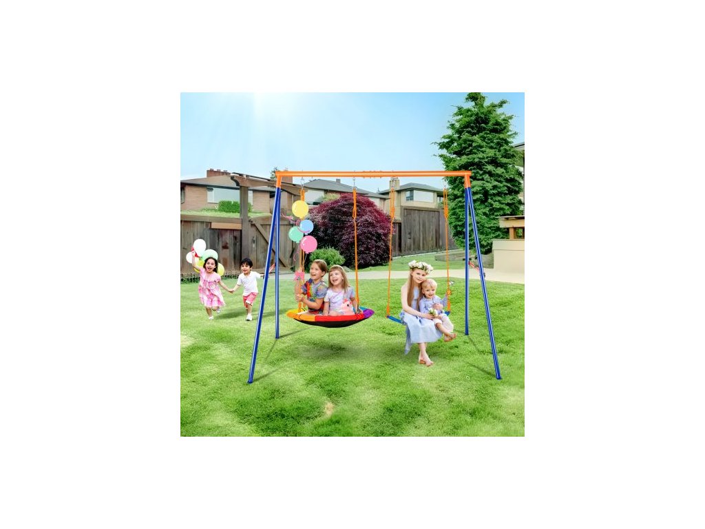 Houpačky VEVOR na zahradu, nosnost 200 kg, s 1 houpacím sedákem ve tvaru talíře, 1 houpacím sedákem s opaskem, odolným kovovým stojanem ve tvaru A a nastavitelným lanem, venkovní houpačka pro dětiVšestranná houpačka ve tvaru A