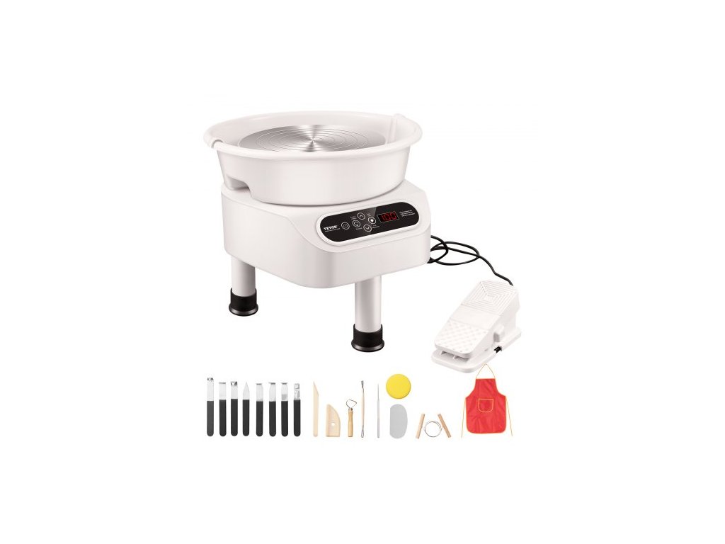 Hrnčířský kruh VEVOR, 10palcový stroj na tvarování keramiky, elektrický kruh o výkonu 350 W s nožním pedálem a dotykovou LCD obrazovkou, keramický kruh s přímým pohonem a 3 podpůrnými nohami pro kutilské umělecké řemeslo, bílýVynikající výkon