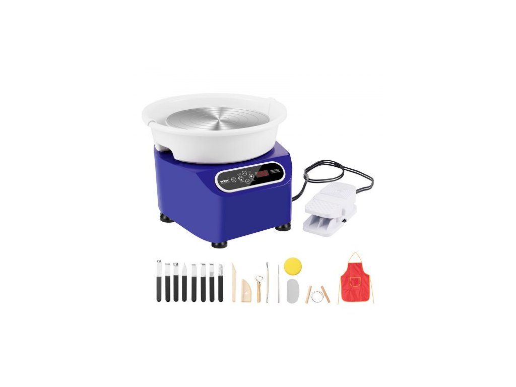 Hrnčířský kruh VEVOR, 10palcový stroj na tvarování keramiky, elektrický kruh o výkonu 350 W s nožním pedálem a dotykovou LCD obrazovkou, keramický kruh s přímým pohonem a tvarovacími nástroji pro kutilské umělecké řemeslo, modrýVynikající výkon