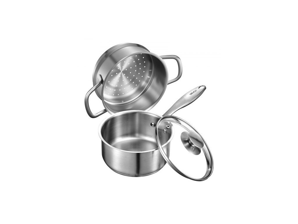 Hrnec VEVOR 1,5 QT s napařovačem, nerezový hrnec se skleněnou poklicí, víceúčelový nepřilnavý nerezový hrnec s ergonomickou rukojetí, vhodný do trouby, myčky nádobí, indukčního vařičeVíceúčelový hrnec
