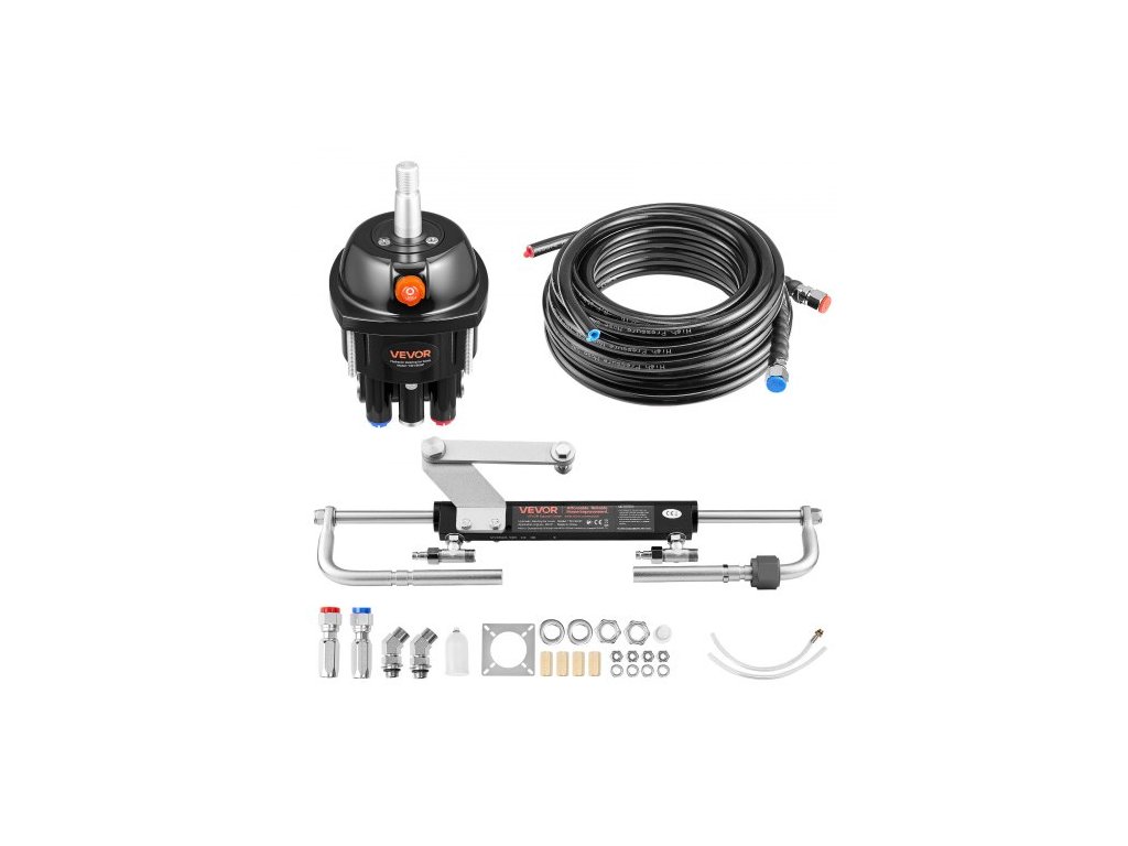 Hydraulická řídící sada VEVOR, 70 kW (90 HP), hydraulický systém řízení pro lodní čluny, s kormidelním čerpadlem 6,9 MPa/1000 psi, obousměrným zámkem a 6m vysokopevnostními hadicemi, pro použití s jednou stanicí a jedním motorem