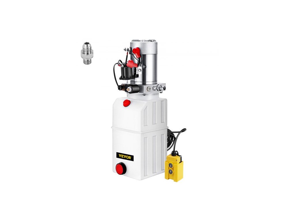 Hydraulický agregát VEVOR 6 litrů, jednočinné hydraulické čerpadlo pro sklápěcí přívěs 12 V DC s 6litrovou kovovou nádrží, hydraulický agregát pro zvedání automobilů