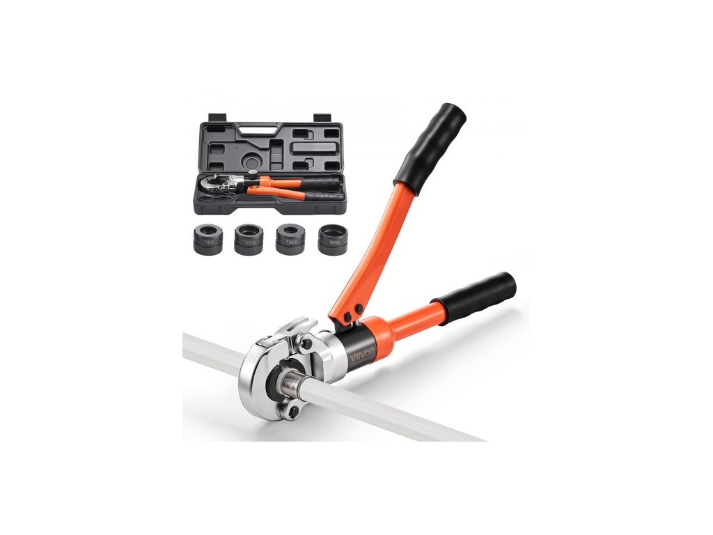 Hydraulický krimpovací nástroj VEVOR na trubky, krimpovací kleště na PEX a hliníkovo-plastové tvarovky s čelistmi TH16 TH20 TH26 TH32 a přepravním pouzdrem, sada krimpovacích kleští pro opravy a instalace instalatérských rozvodů