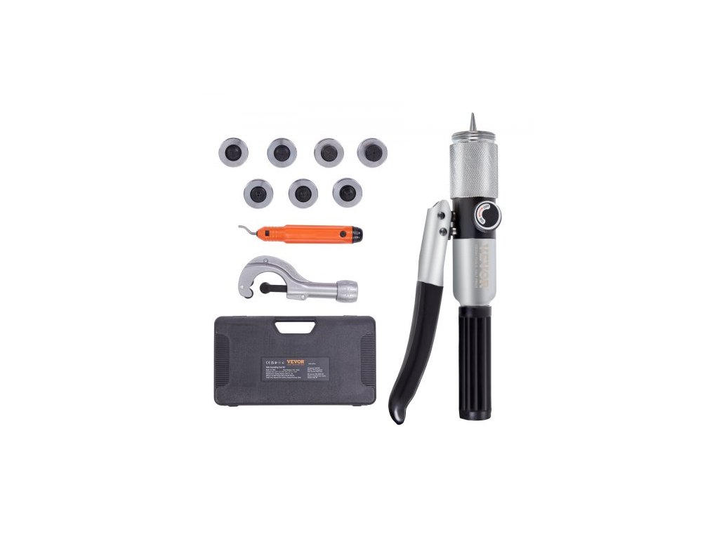 Hydraulický rozšiřovač trubek VEVOR, vnější průměr 3/8" až 1-1/8", hydraulický tvářecí nástroj HAVC se 7 hlavami rozšiřovače trubek, nástroj na odjehlování, řezák trubek pro měděné, hliníkové, mosazné a měkké ocelové trubky