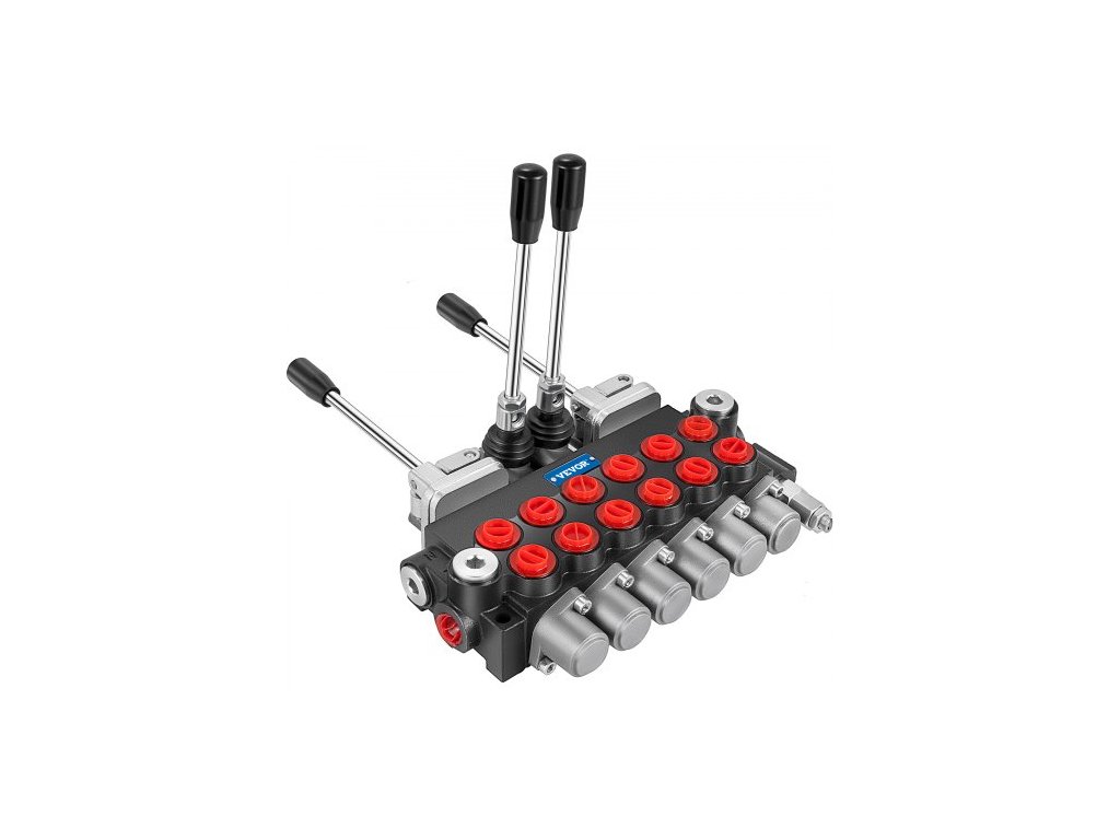 Hydraulický rozváděč VEVOR, 6cestný hydraulický rozváděč, hydraulický rozváděč pro nakladač s výkonem 11 GPM, rozváděč 4500 PSI, hydraulické ventily a ovládací prvky pro traktory, nakladače a nádrže