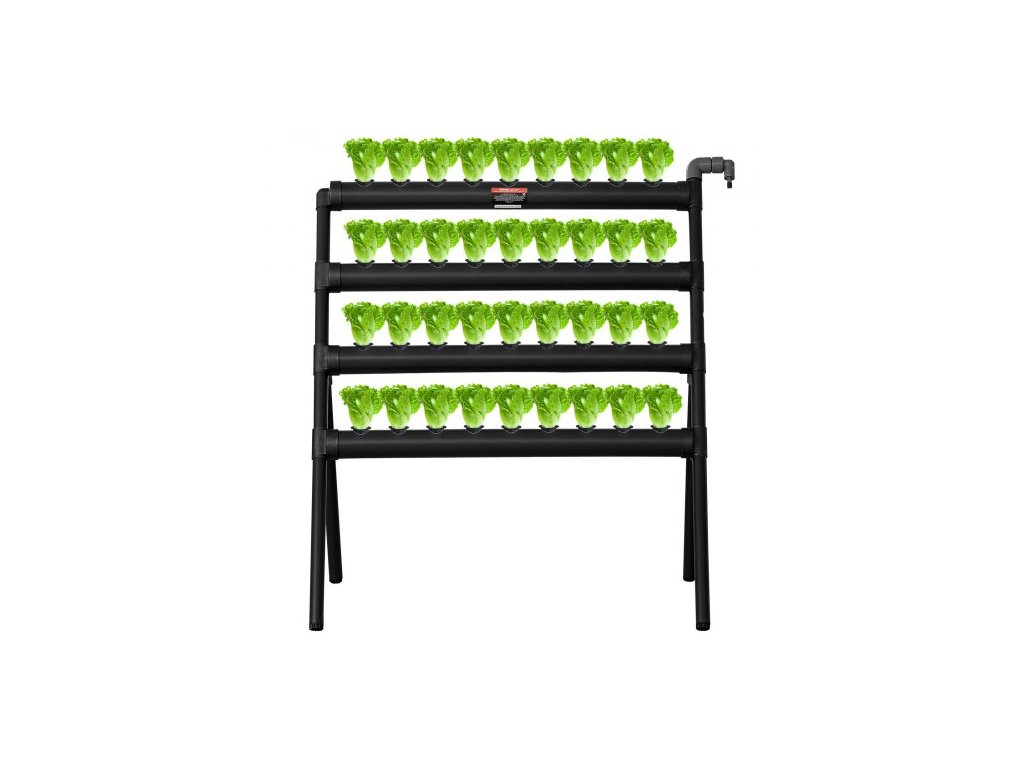 Hydroponický pěstební systém VEVOR, 36 míst, 4 vrstvy, tmavě šedé PVC trubky, hydroponická pěstební sada s vodním čerpadlem, časovačem, košíky a houbičkami na ovoce, zeleninu a bylinkyAutomatizované zavlažování