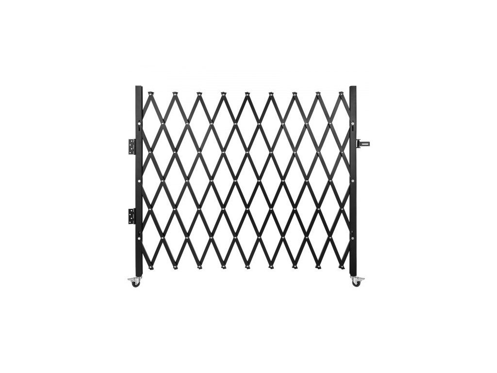 Jednoduchá skládací bezpečnostní brána VEVOR, 216 × 214 cm (Š × V), skládací brána, ocelová harmoniková bezpečnostní brána, flexibilní rozšiřující se bezpečnostní brána, 360° rolovací barikádová brána, nůžková brána/dveře s visacím zámkemRozšiřitelná šířka 7,1 stop