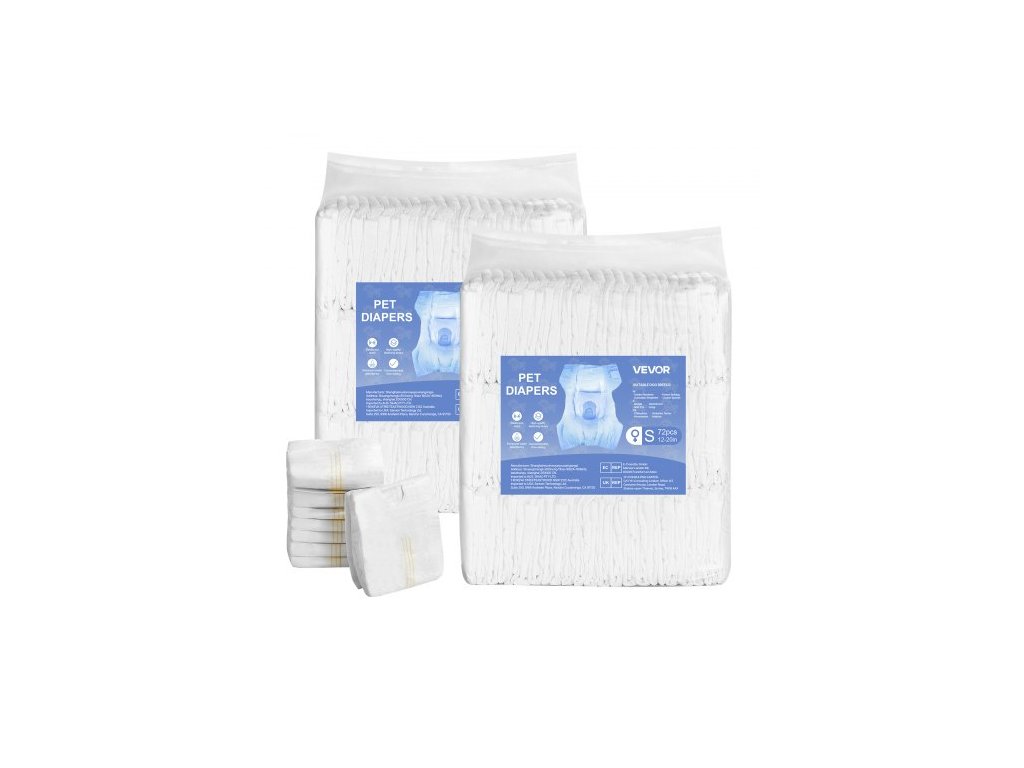 Jednorázové plenky VEVOR pro psy, super savé plenky pro feny, 360° nepropustné plenky pro feny s indikátorem vlhkosti pro období říje, výcvik, inkontinenci - S, 144 kusů (2 balení po 72)