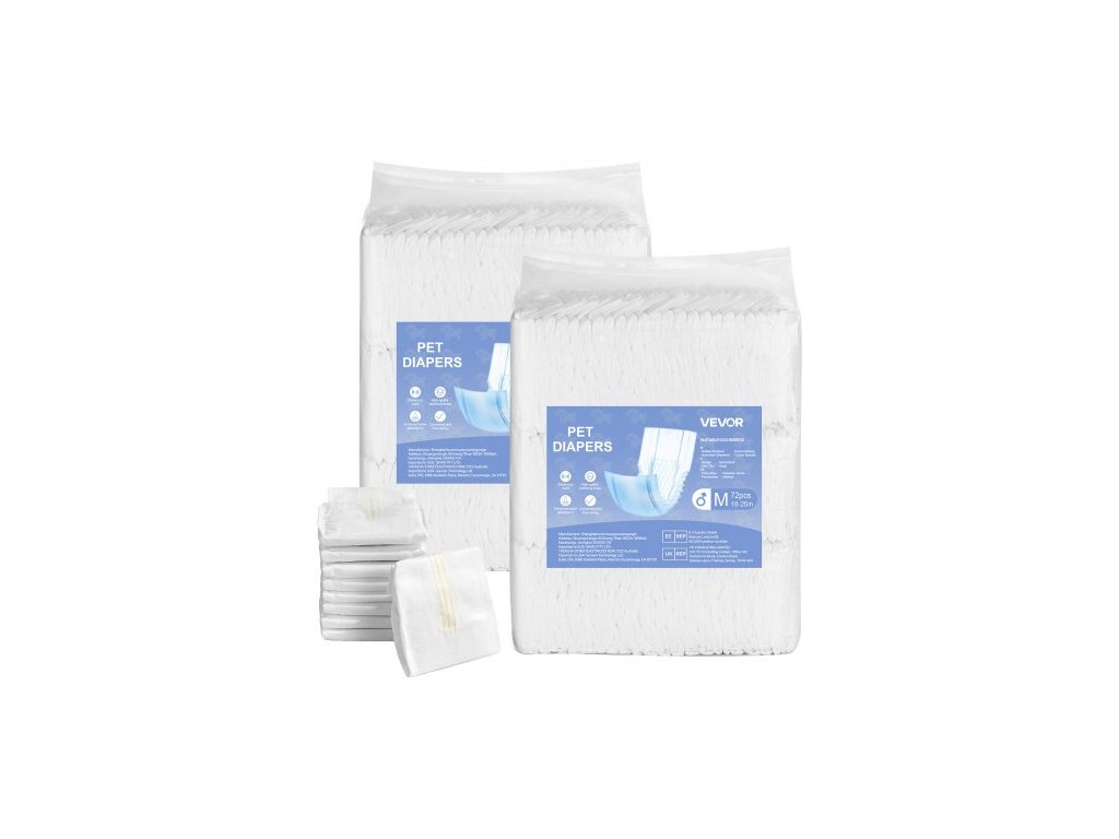 Jednorázové plenky VEVOR pro psy, super savé zavinovačky pro psy, 360° nepropustné břišní pásky s indikátorem vlhkosti pro pejsky v říji, při výcviku a inkontinenci - M, 144 kusů (2 balení po 72)144dílné jednorázové plenky pro psy