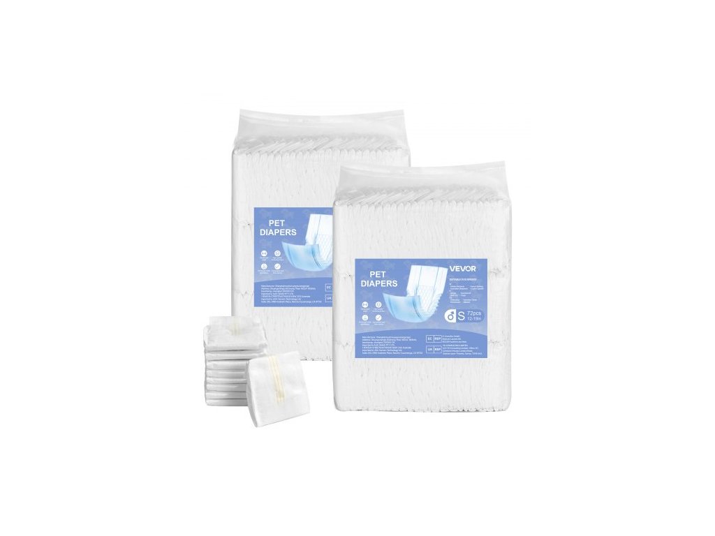 Jednorázové plenky VEVOR pro psy, super savé zavinovačky pro psy, 360° nepropustné břišní pásky s indikátorem vlhkosti pro pejsky v říji, při výcviku a inkontinenci - S, 144 kusů (2 balení po 72)