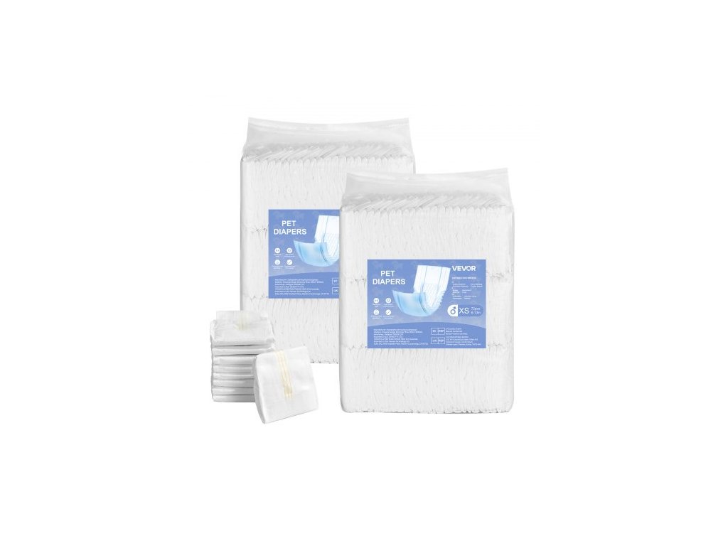 Jednorázové plenky VEVOR pro psy, super savé zavinovačky pro psy, 360° nepropustné břišní pásky s indikátorem vlhkosti pro pejsky v říji, při výcviku a inkontinenci - XS, 144 kusů (2 balení po 72)144dílné jednorázové plenky pro psy