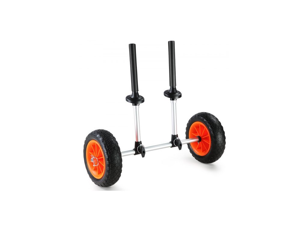 Kajakový vozík VEVOR pro vysoké zatížení, nosnost 137 kg, odnímatelný vozík na kánoi s 10" plnými pneumatikami, nastavitelná šířka a horní pěnová ochrana, pro kajaky s odtokovými otvory o průměru 2,54 cm a více