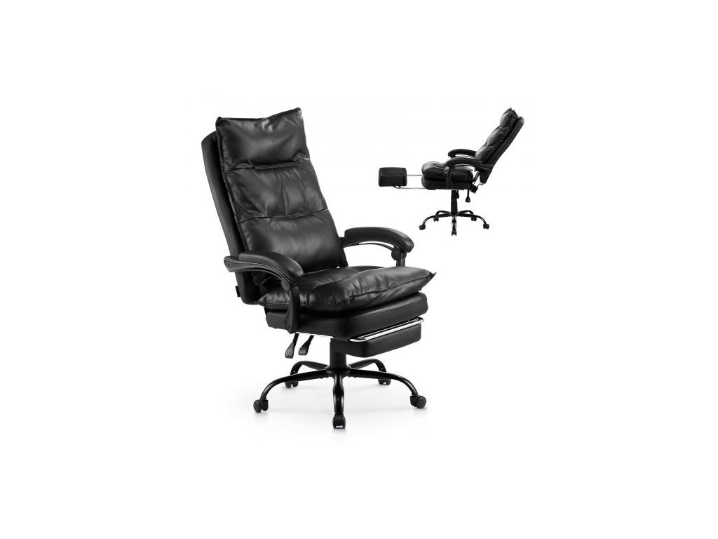 Kancelářská židle VEVOR, židle s vysokým opěradlem, podnožkou a bederním polštářem, ergonomická kancelářská židle s možností sklopení o 135° a nastavitelnou výškou, otočná židle z umělé kůže pro práci, studium a hry, černá