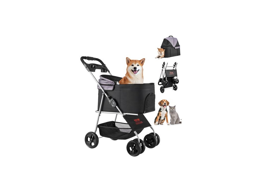 Kočárek pro domácí mazlíčky VEVOR, nosnost 15,5 kg, skládací kočárek pro psy, kočárek pro kočky se 4 kolečky, odnímatelným nosičem a síťovanými okny, přenosný nosič s brzdou pro malá až střední zvířata