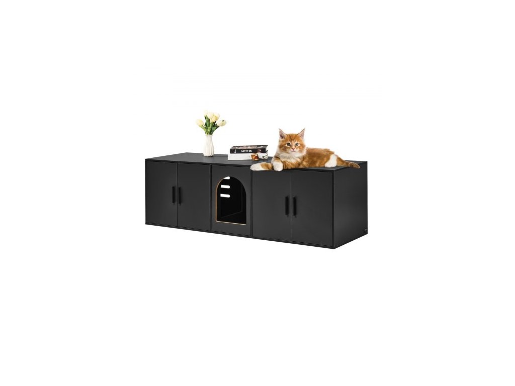 Kočičí toaleta VEVOR pro 2 kočky, 147 cm skrytý nábytek na toaletu, dvoulůžková velká kočičí toaleta, vnitřní dřevěný bouda pro domácí mazlíčky, TV stolek, odkládací stolek, pasuje do většiny kočičích toalet, černáZkrášlete si domácí prostředí