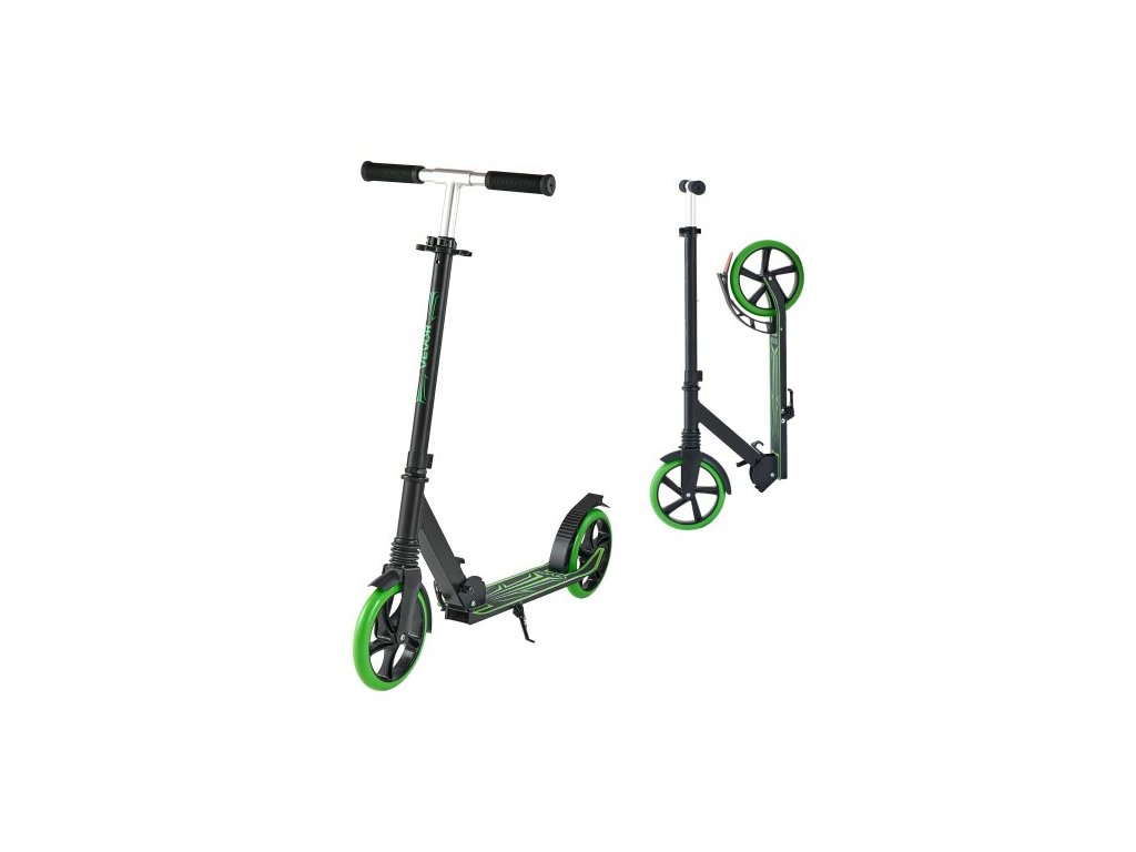 Koloběžka VEVOR pro děti od 8 let, teenagery a dospělé, dvoukolová batolecí koloběžka s nastavitelnou výškou řídítek, široká protiskluzová deska, skládací a lehká pro chlapce a dívky do 99,8 kg, černá + zelenáStojan na nohy