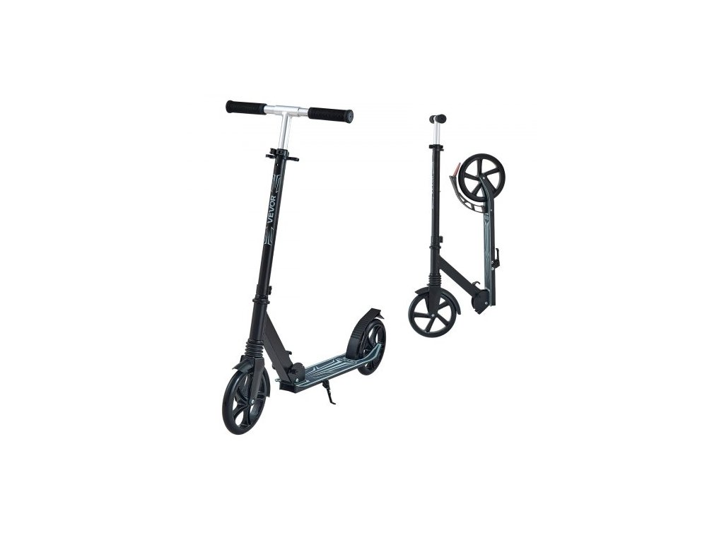 Koloběžka VEVOR pro děti od 8 let, teenagery a dospělé, dvoukolová dětská koloběžka s nastavitelnou výškou řídítek, široká protiskluzová deska, skládací lehký rám pro chlapce a dívky do 99,8 kg, černá