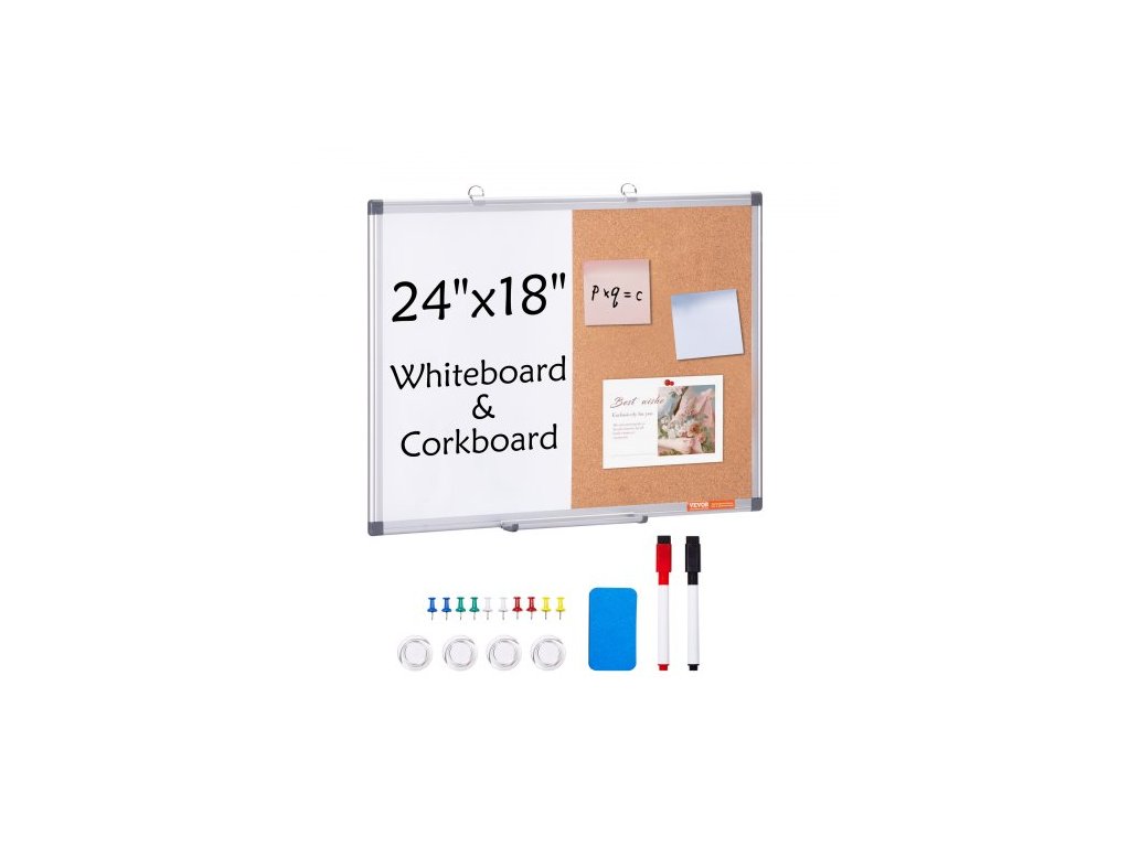 Kombinace bílé a korkové tabule VEVOR 24"x18" s hliníkovým rámem – magnetická nástěnka 2 v 1 s možností suchého mazání k montáži na zeď – ideální do školy, domů i kanceláře