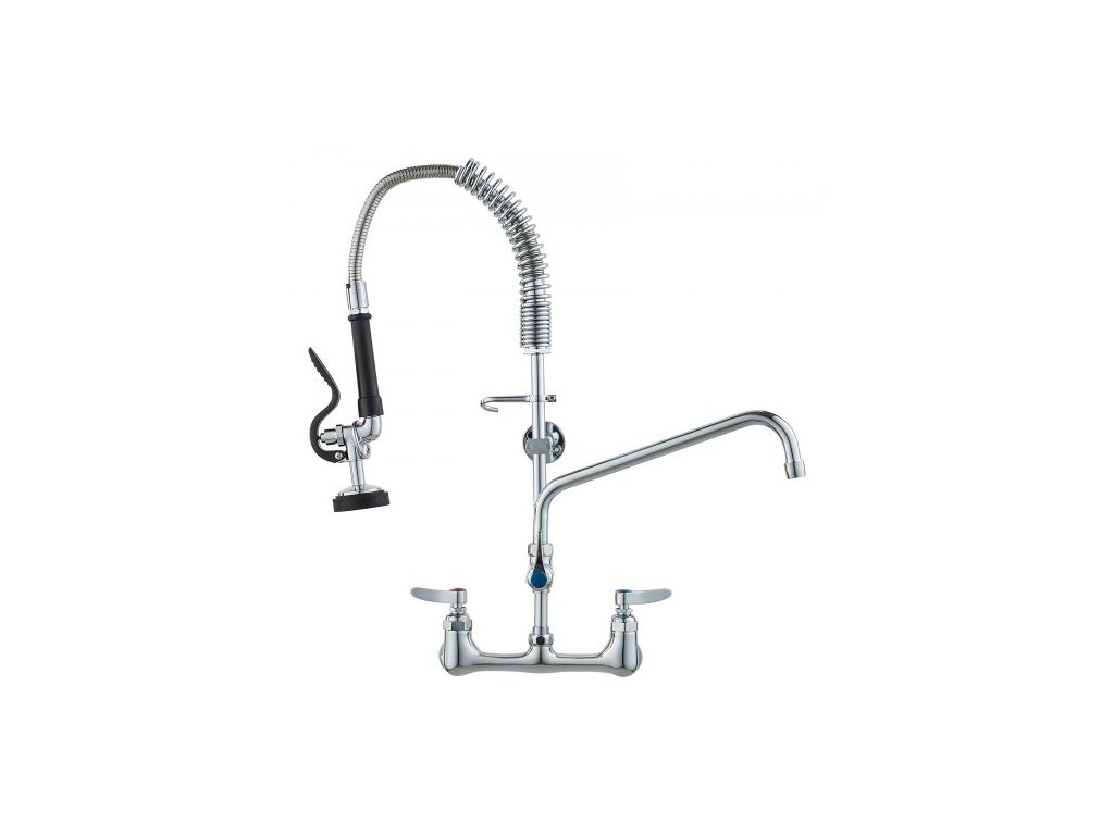 Komerční baterie VEVOR s oplachovacím rozprašovačem, 25" výška, 8" střed, 12" otočný výtok, nástěnná dřezová baterie, mosazné zařízení se stahovacím sprejem, pro 1/2/3 přihrádkový dřezDuální výstup