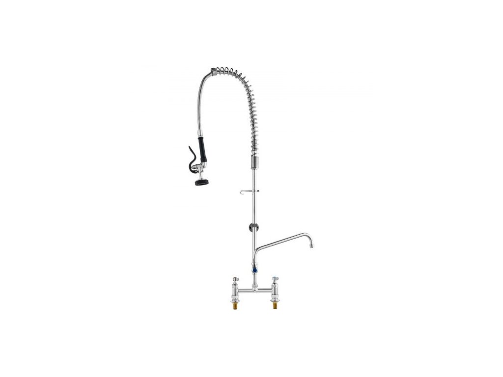 Komerční baterie VEVOR s předoplachovým rozprašovačem, výška 112 cm, středový otvor 20 cm, výkyvný výtok 30 cm, montáž na kuchyňský dřez, mosazná konstrukce s tažnou sprchou, pro dřez s 1/2/3 přihrádkamiDvojitá zásuvka