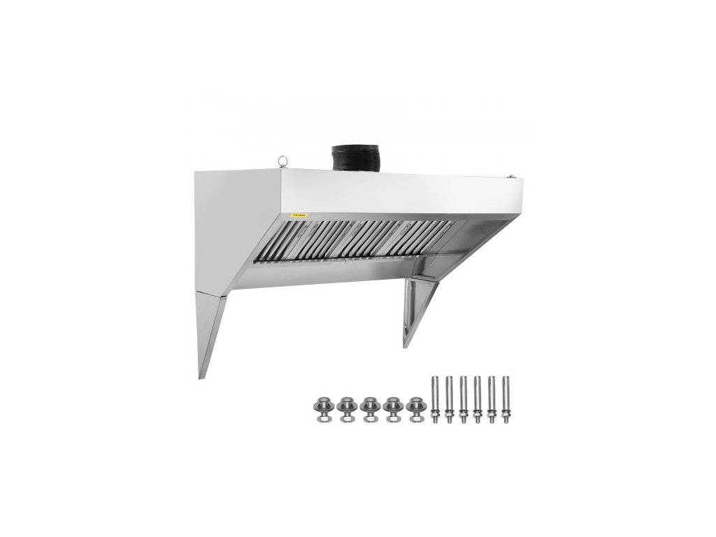 Komerční odsávací digestoř VEVOR, odsávací digestoř pro food truck o délce 8 stop, digestoř z nerezové oceli 201 pro koncesní přívěs se 4 odnímatelnými mřížkami ve tvaru U, olejovým filtrem, odolná proti korozi, pro kuchyňskou restauraci