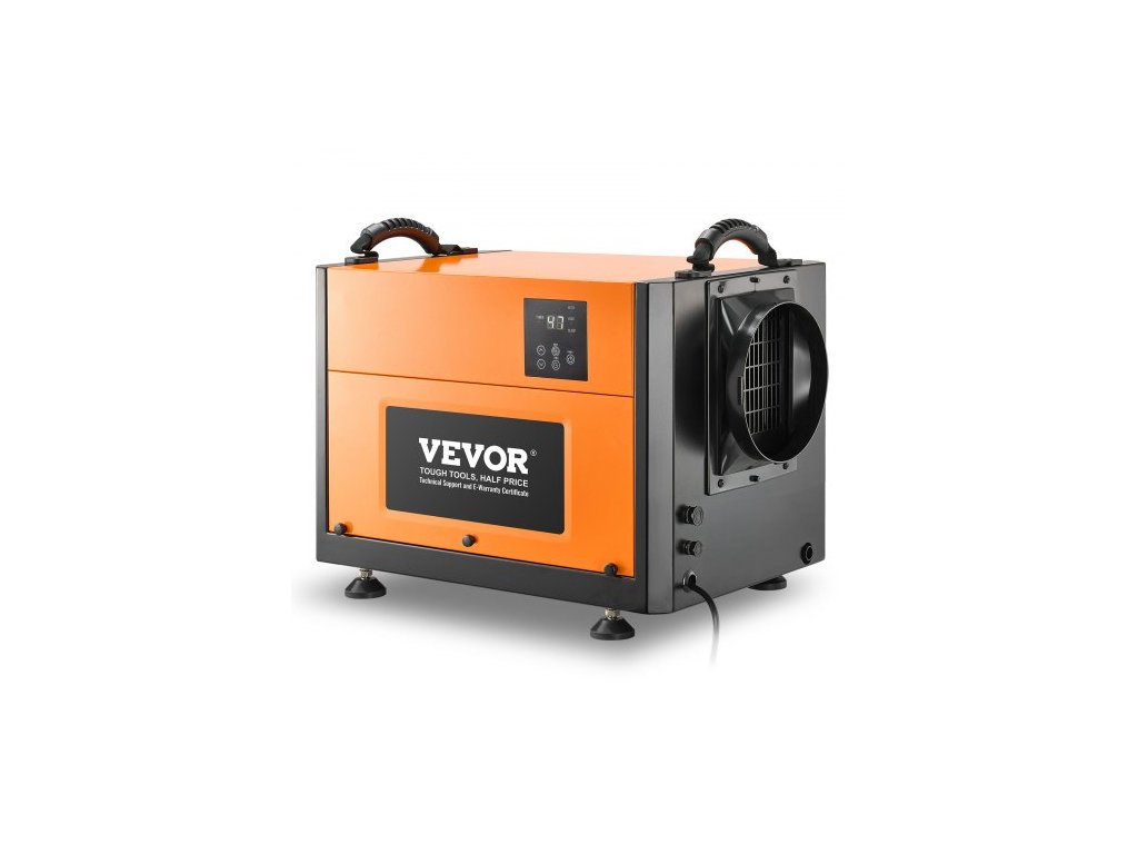 Komerční odvlhčovač VEVOR 50 pintů s odtokovou hadicí, přenosný odvlhčovač do sklepních prostor, průmyslová třída, automatické odmrazování/odvodňování, odolná pozinkovaná ocel, LED indikátorPohodlná rukojeť