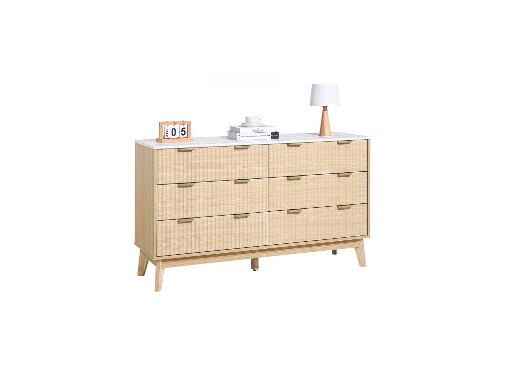 Komoda VEVOR se 6 vroubkovanými zásuvkami, dřevěná komoda s posuvným a protipřevrhovacím mechanismem, moderní minimalistická komoda, vroubkovaný úložný prostor do obývacího pokoje, chodby, ložnice, vstupní haly, světlé dřevoMultifunkční komoda se zásuvkami