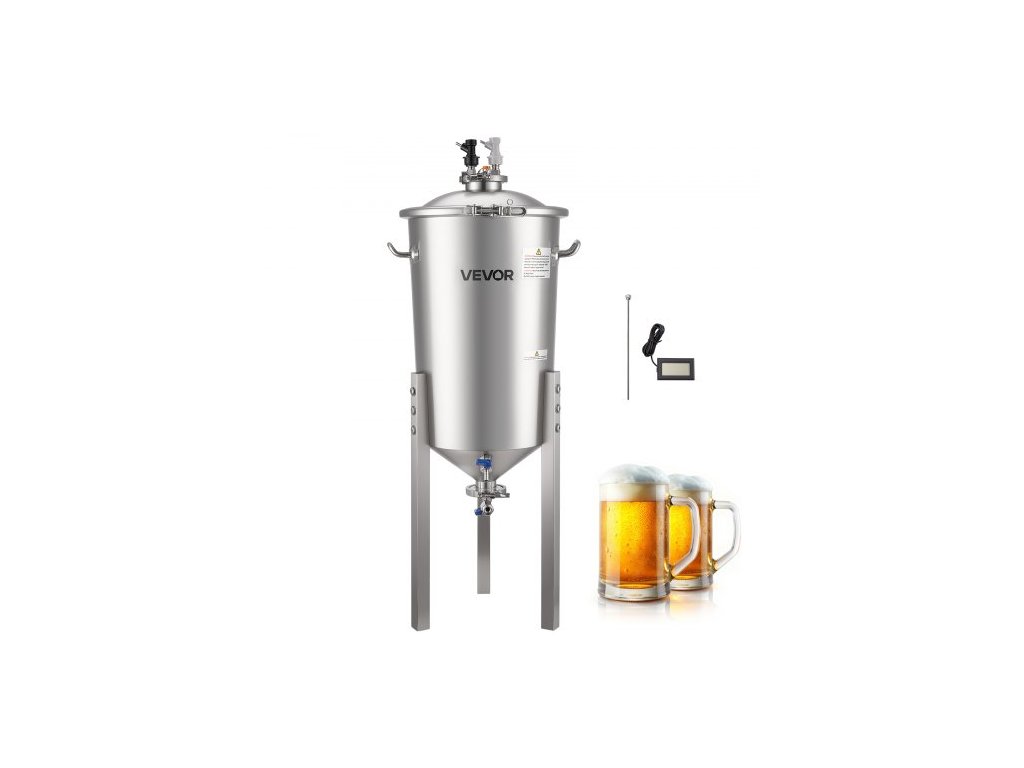 Kónický fermentor VEVOR z nerezové oceli, 8 galonů/30 l domácí fermentační nádrž na pivo, fermentor s kónickým dnem, 3 nastavitelné nohy, víko, rukojeť a teploměr, pro kvašení vína a piva