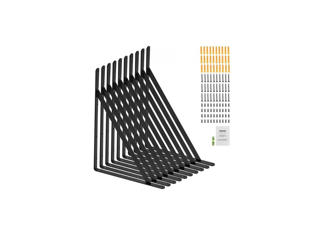 Konzola na police VEVOR, 12 x 8 palců, 10 ks, Vysoce odolné plovoucí konzole na police, Konzoly pro police, 3mm silná matně černá trojúhelníková konzola na police, Ocelové konzole na police s nosností 160 liberInstalační držák