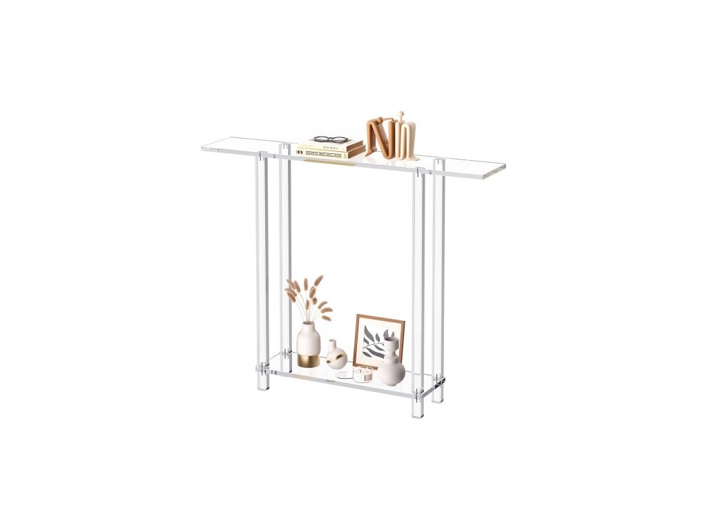Konzolový stolek VEVOR z akrylu, úzký odkládací stůl se 2 úrovněmi a otevřeným úložným prostorem ve spodní části, moderní obdélníkový akrylový koncový stolek, průhledný vstupní stůl do předsíně, chodby, obývacího pokoje, 19,3 x 100 x 80 cm …