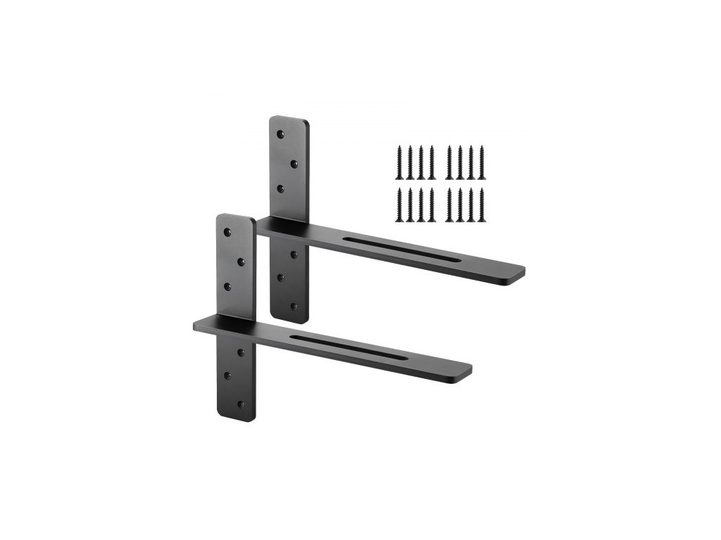 Konzoly na police VEVOR T, 2 ks, nosnost 90 kg, 16x2,89x12 palců / 406,4x73,5x304,8 mm, pevné ocelové konzole pro vysoké zatížení pro police, podpěra pracovní desky, plovoucí konzola se šrouby
