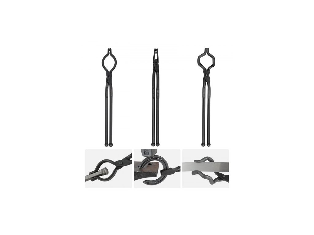 Kovářské kleště VEVOR, 18” 3 ks, kleště na šrouby V-bit, kleště Wolf Jaw a kleště na bity Z, kovářské kleště z uhlíkové oceli s ocelovými nýty A3, pro začínající a ostřílené kováře, čepele a řemeslníky
