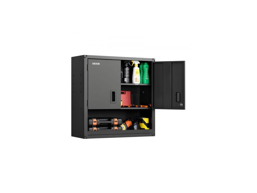 Kovová nástěnná skříňka VEVOR, 76,2Š x 30,5H x 76,2V palce, ocelová plovoucí závěsná úložná skříňka s uzamykatelnými dvířky a nastavitelnou policí do garáže, sklepa, kuchyně, skladu, nutná montáž, černá30palcová nástěnná skříňka