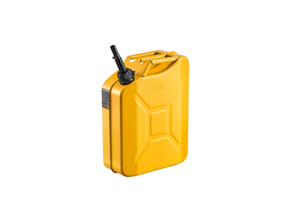 Kovová palivová nádrž VEVOR, 20 l, kanystr na palivo s výlevkou a pohodlnou rukojetí, maximální průtok 6 l/min, nepropustná a korozivzdorná kovová palivová nádrž, vhodná pro většinu aut, motocyklů, čtyřkolek, UTV, žlutáHadice Φ20 mm – stálý proud