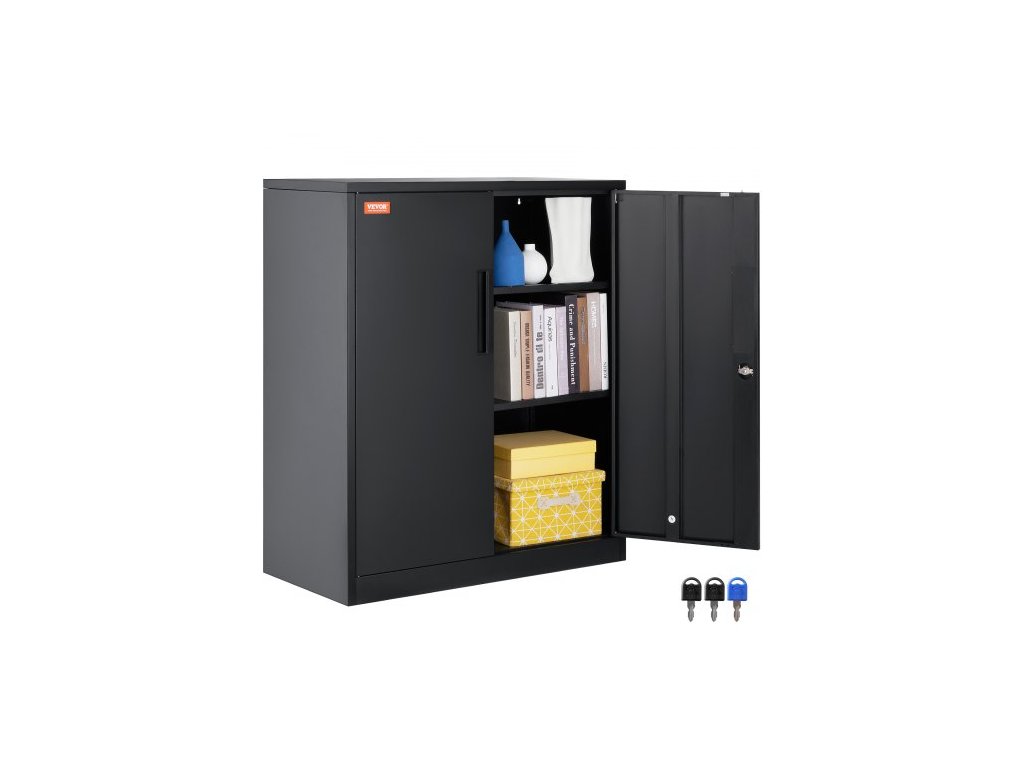 Kovová úložná skříň VEVOR se 2 magnetickými dvířky a 4 nastavitelnými policemi, nosnost 90 kg na polici, uzamykatelná ocelová úložná skříň, kovová skříň 107 cm se 3 klíči, pro kancelář, garáž, domov, černá