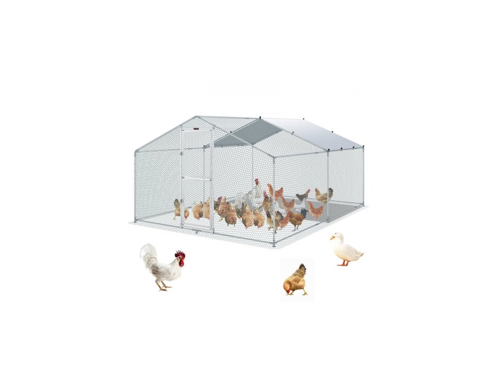 Kovový kurník VEVOR, 13,1 x 9,8 x 6,6 stop, velký výběh pro kuřata, venkovní klec s pistolí a střechou, pro farmu nebo zahradu, s vodotěsným krytem a ochrannou sítí, pro slepice, kachny a králíkyPřipraveni na cokoli