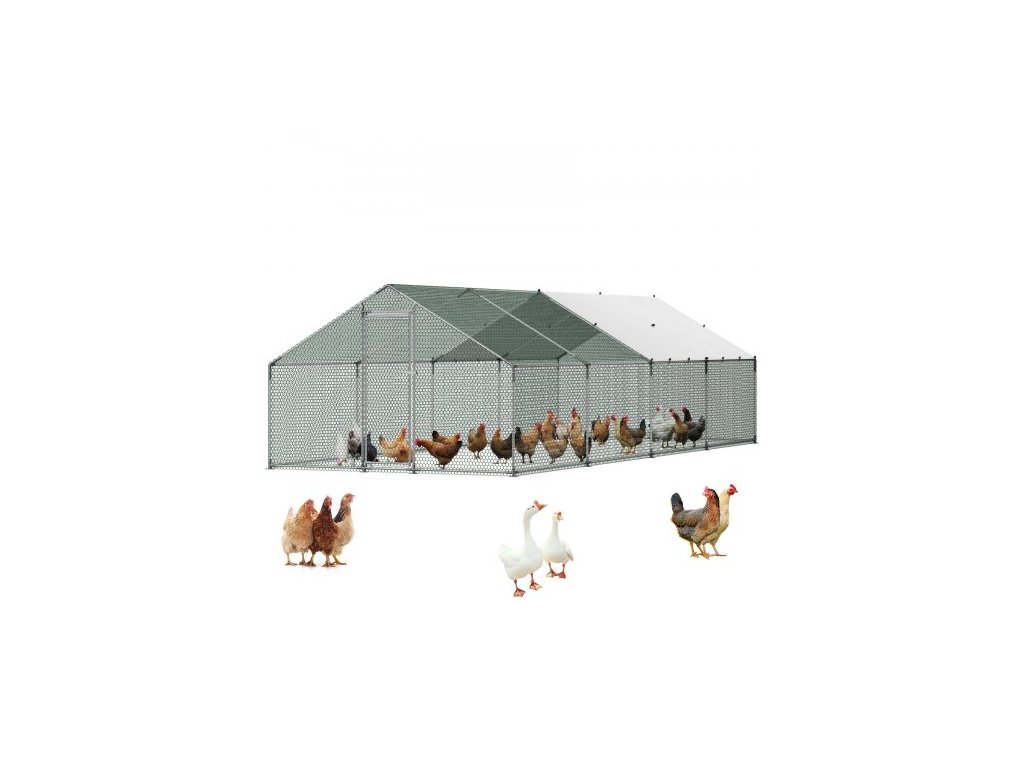 Kovový kurník VEVOR, velký výběh pro kuřata s krytem, 9,8x26,2x6,5 stop, věžovitá střecha, ohrada pro kurník s bezpečnostním zámkem, venkovní klec pro kachny, králíky a drůbež, ohrada pro zahradu, farmu, dvůrVelké šrouby