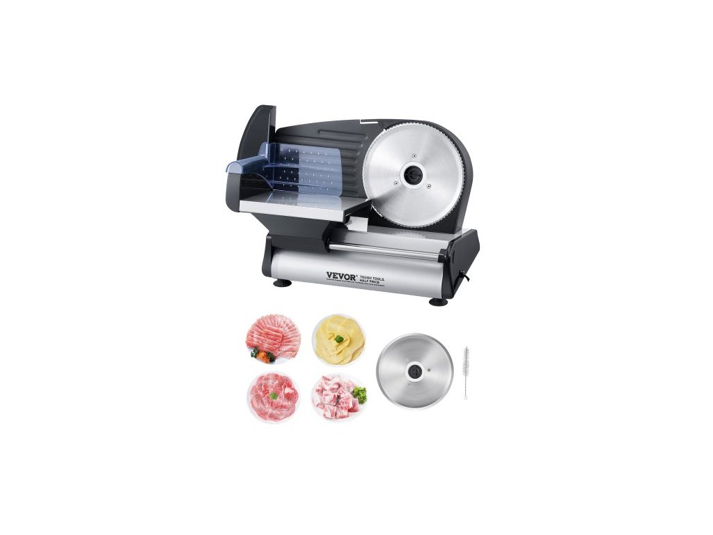 Kráječ masa VEVOR, elektrický kráječ na lahůdky 7,5 palce, 180W kráječ masa se dvěma prémiovými čepelemi SUS420, nastavitelná tloušťka 0-0,6 palce, kráječ masa, tvrdého chleba a sýrů, domácí použití