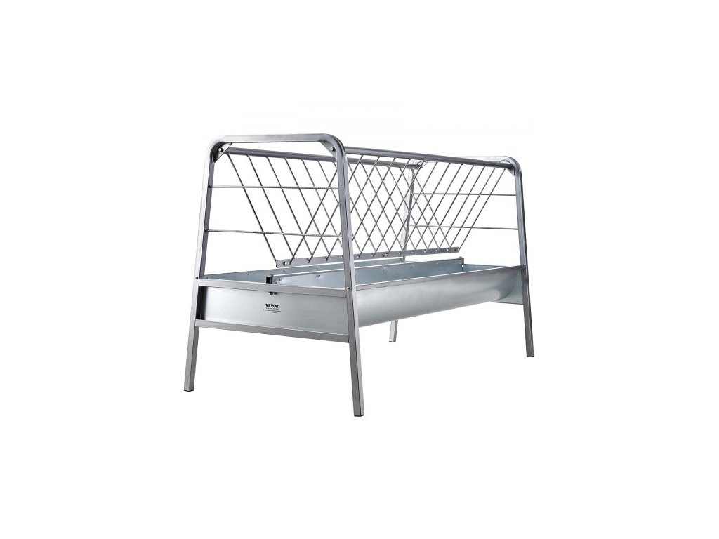Krmítko na seno pro hospodářská zvířata VEVOR, 2 v 1 krmítko na obilí a seno, krmítko na pastviny o objemu 80 galonů, krmítko na seno pro kozy o délce 59" s hlubší krmnou mísou, odolný ocelový držák na obilí a seno pro ovčí farmyVelkokapacitní design