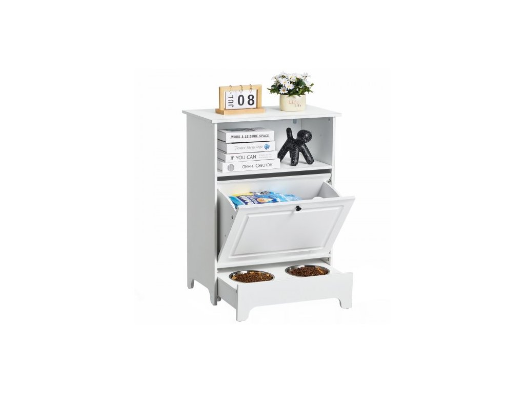 Krmná stanice VEVOR pro domácí mazlíčky se 2 miskami z nerezové oceli, vyvýšené misky pro psy s úložným prostorem, úložný prostor pro krmivo pro psy a krmná stanice s výklopnou úložnou skříňkou, organizér na hračky pro domácí mazlíčky, pro malé psy