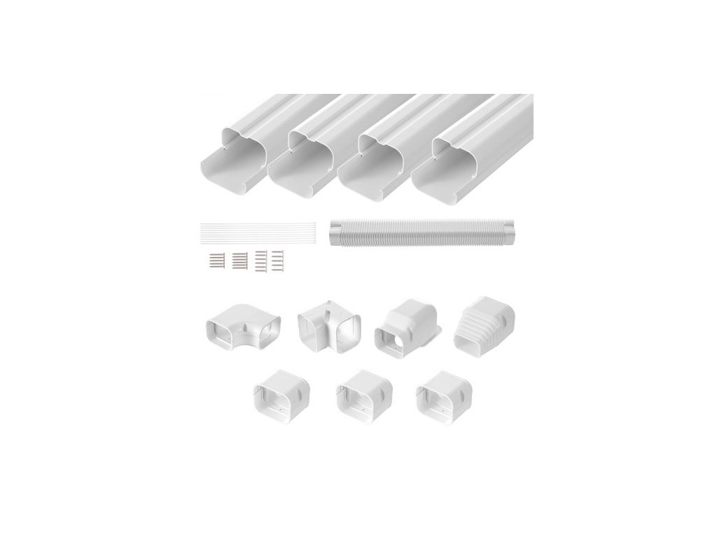 Kryt potrubí VEVOR Mini Split Line Set 76,2 mm Š 4830 mm D, dekorativní PVC kryt potrubí pro klimatizaci se 4 rovnými kanály a kompletními komponenty, snadná instalace, natíratelný pro tepelná čerpadla, bílýKompletní sada příslušenství