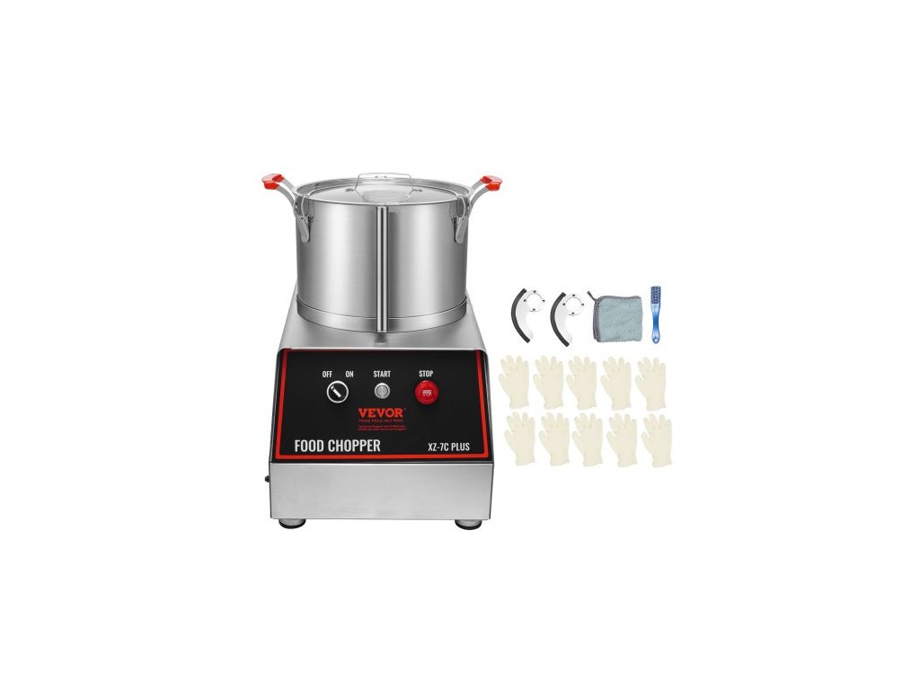 Kuchyňský robot a sekáček na zeleninu VEVOR, mísa o objemu 7 litrů, 750W kuchyňský robot z nerezové oceli potravinářské kvality se 2 extra noži ve tvaru S, multifunkční pro sekání zeleniny, masa, obilovin a ořechů