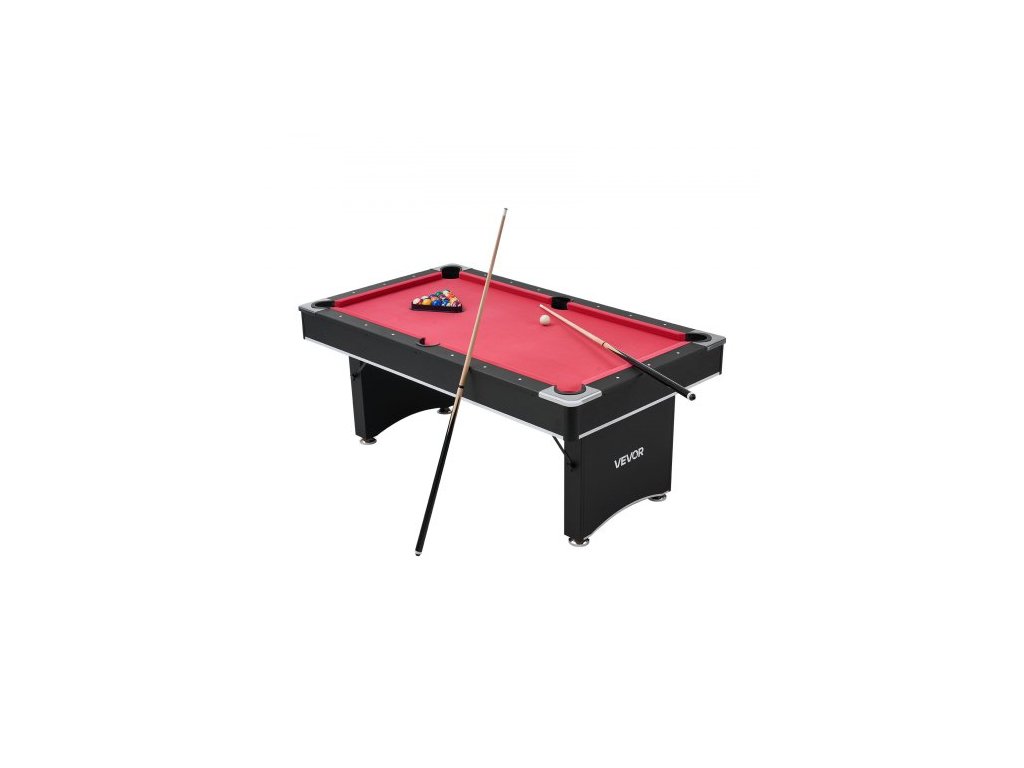 Kulečníkový stůl VEVOR, přenosné kulečníkové stoly 183 cm, stabilní herní stůl s nastavitelnými nohami, sada obsahuje kouli, tágo, stojan, křídu a štětec, černý s červeným hadříkem, pro rodinné použití, rekreační místnostKompletní startovací sada