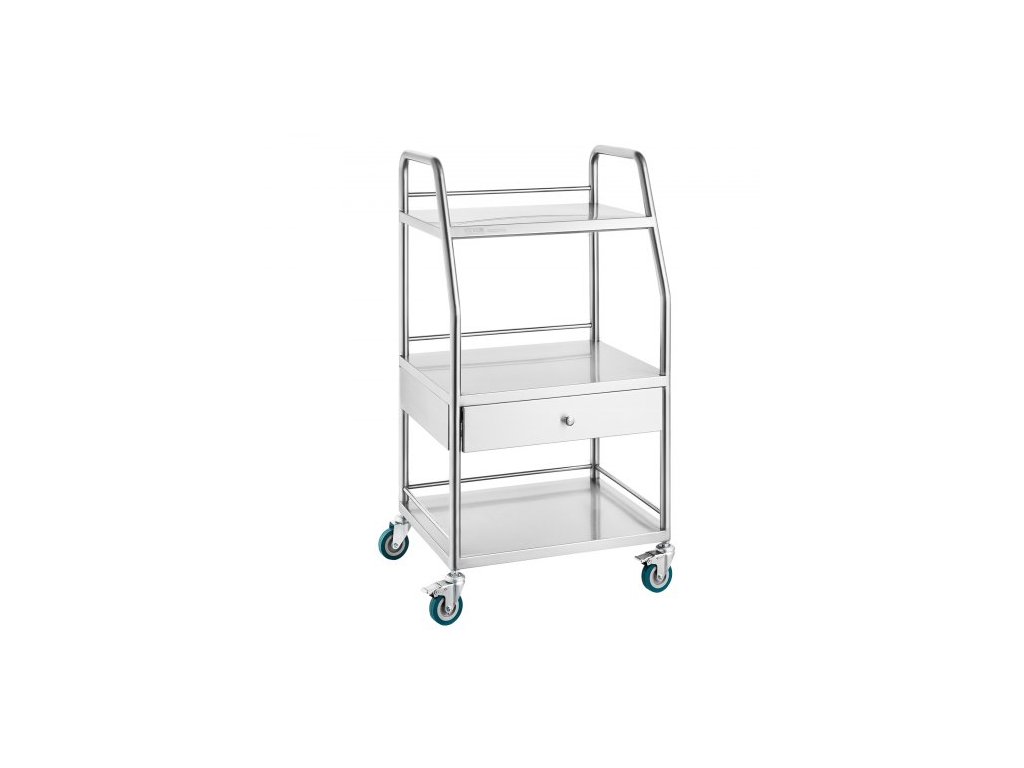 Kolo: Všesměrové, Uzamykatelné, Hmotnost produktu: 8,7 kg, Velikost produktu: 21,26 x 18,11 x 38,98 palce / 540 x 460 x 990 mm, Maximální nosnost: 100 kg,Číslo modelu položky: K-SUS1002, Materiál: Nerezová ocel, Vrstva: 3, Velikost zásuvky: 11,14 x 18,39 x 3,23 palce / 283 x 467 x 82 mm