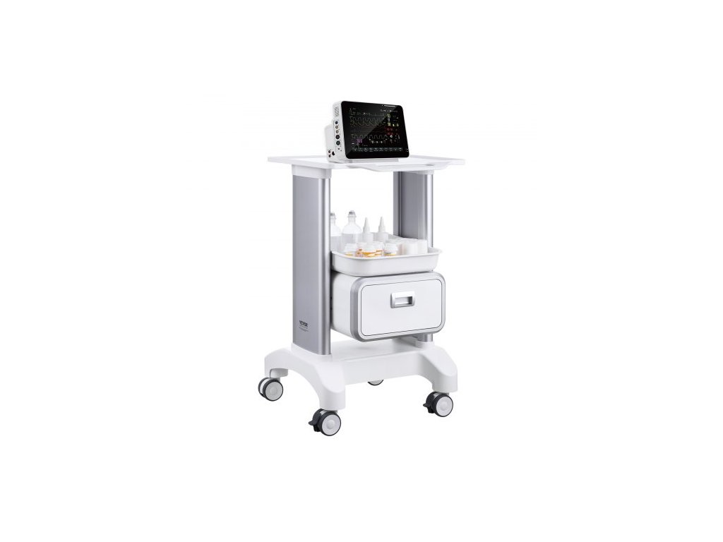 Laboratorní vozíky VEVOR se 2 úrovněmi, laboratorní vozík s 1 zásuvkou a 1 horním přihrádkou, mobilní lékařský vozík z materiálu ABS, laboratorní vozík na kolečkách se 4 tichými kolečky pro laboratoř, kliniku, nemocnici, salon, bílýVysoká nosnost a stabilita
